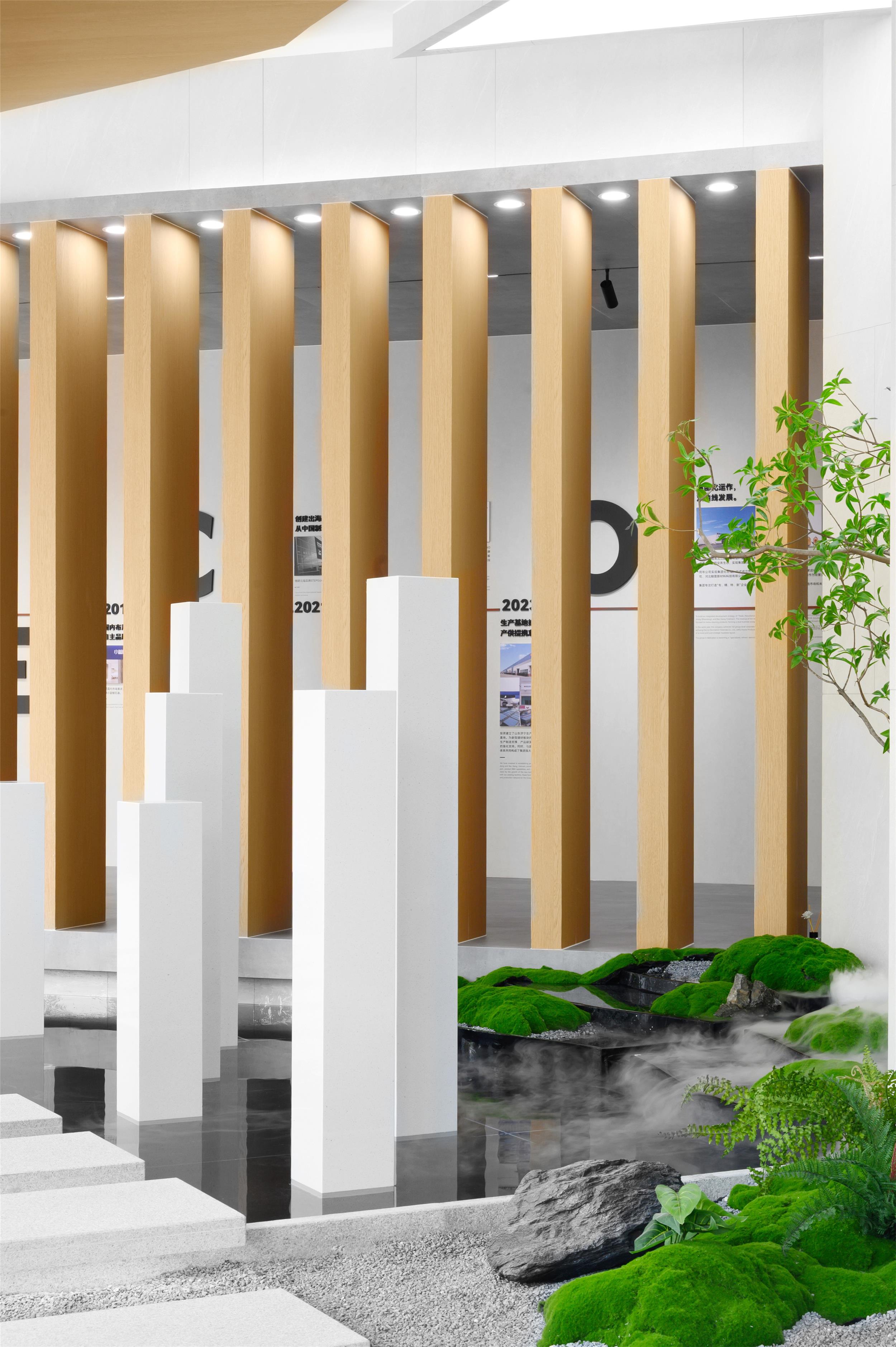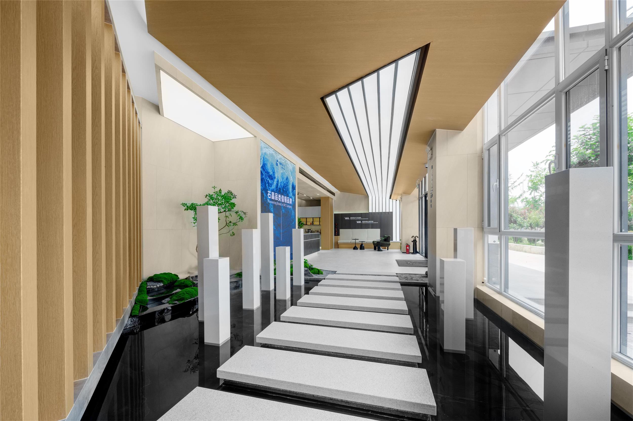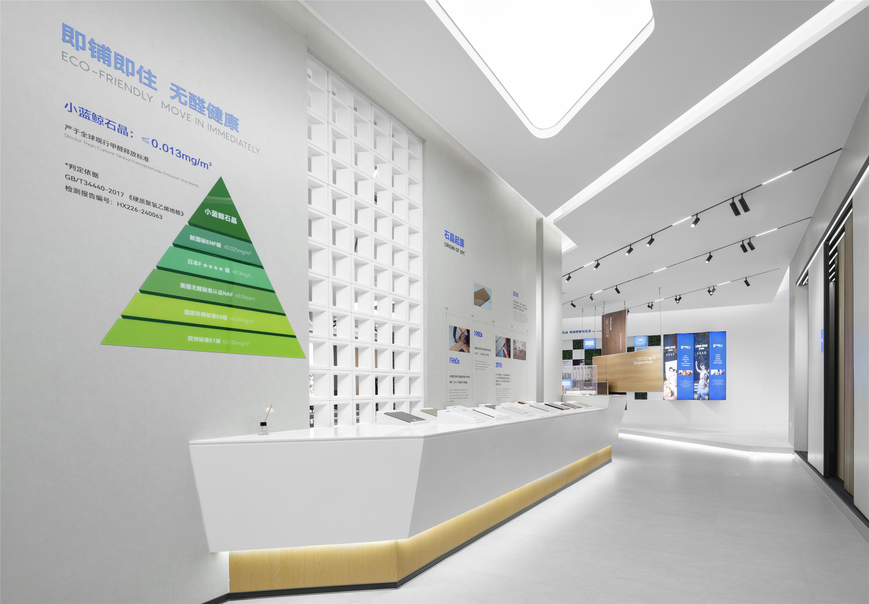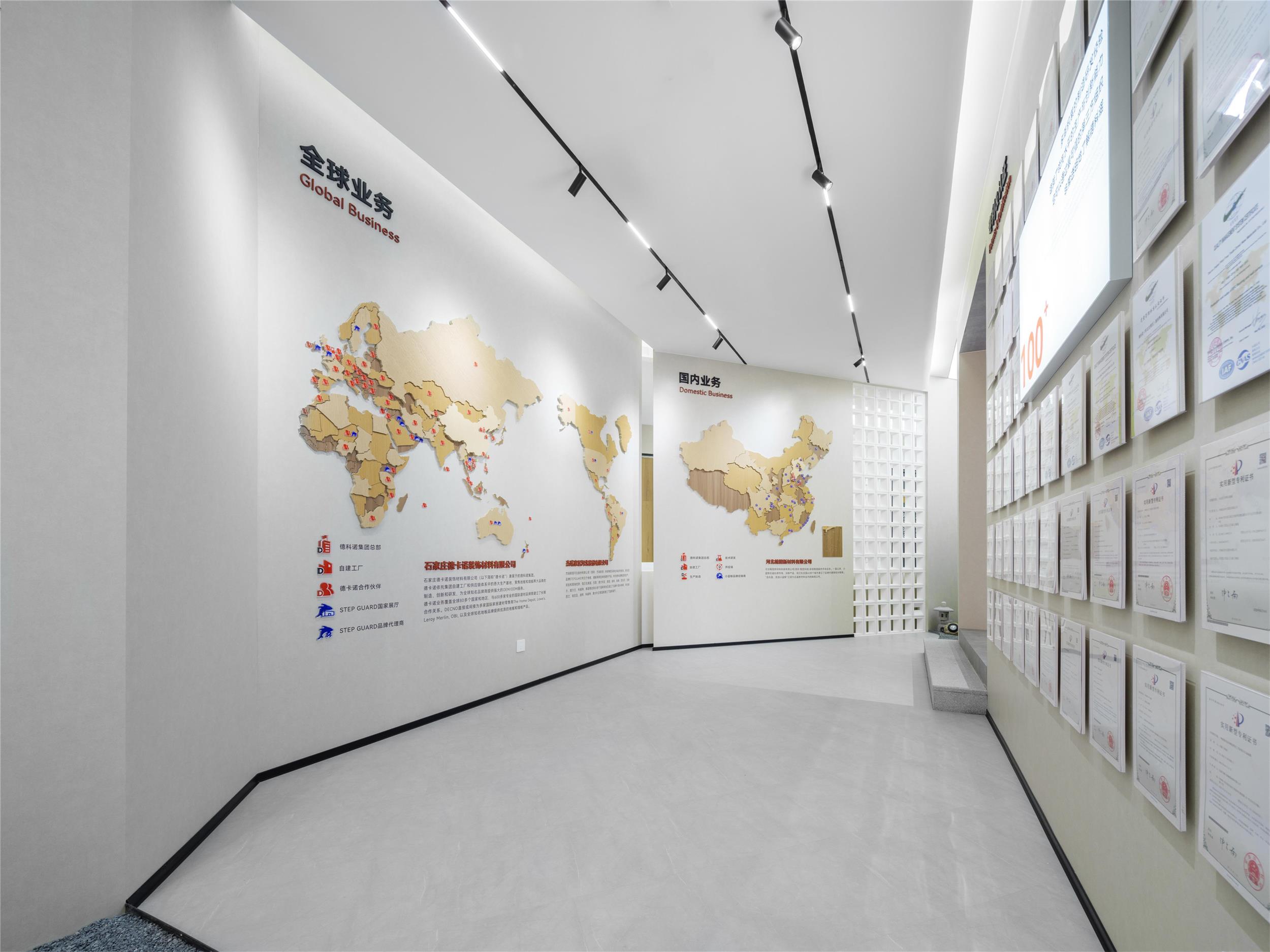 小藍(lán)鯨正定保稅區(qū)品牌形象展廳立足于企業(yè)歷史文化的戰(zhàn)略性總結(jié),以524平方米的一層空間為載體,融合品牌宣傳、產(chǎn)品展示、客戶接待等多重功能。作為連接辦公空間與生產(chǎn)園區(qū)的樞紐,展廳不僅承載著品牌形象的對(duì)外傳播,更通過設(shè)計(jì)的力量,將企業(yè)文化與創(chuàng)新精神具象化。